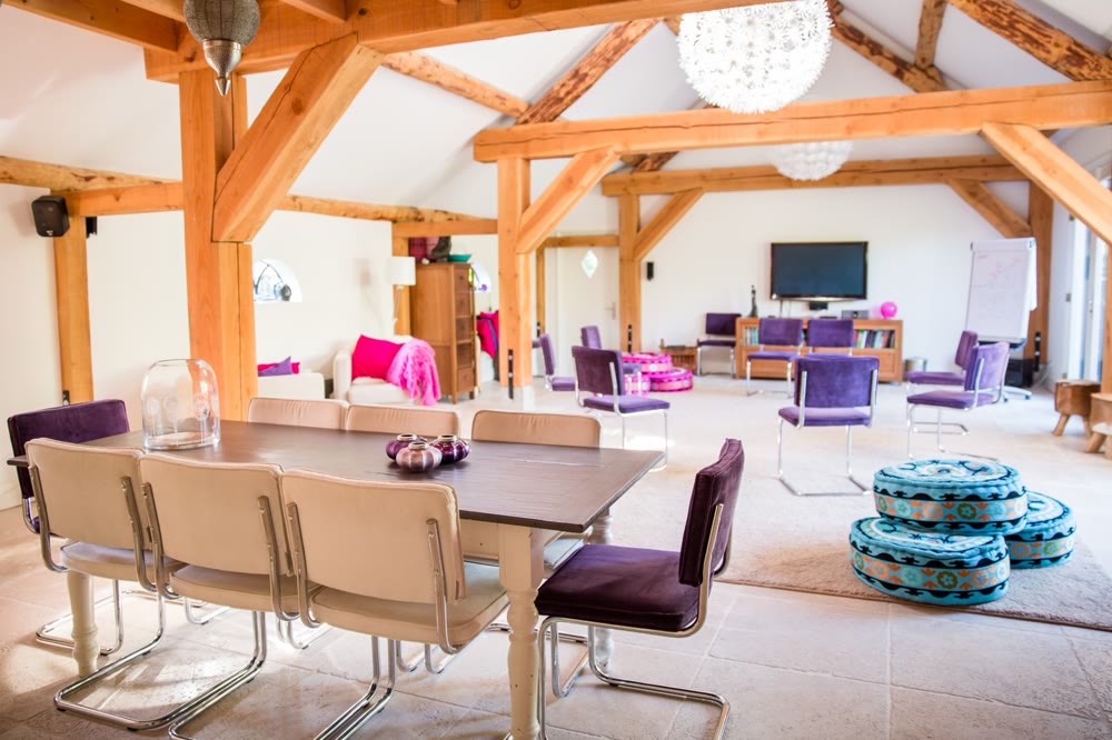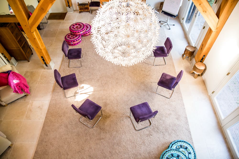 Midden in een bosrijke omgeving, omringd door de natuur van Natuurmonumenten en het Gooisch Natuurreservaat, vindt je ons ‘House of Development’. Deze locatie is een oase van rust en biedt een scala aan sfeervolle binnenruimtes en een buitenterras voor diverse bijeenkomsten. De verschillende zalen dragen de namen van invloedrijke denkers zoals Jung, Wheelan en Bateson, wat de leerzame en verdiepende sfeer van de locatie benadrukt. Of je nu een intieme coachingsessie voor twee personen organiseert of een training voor een groep tot twintig personen, er is altijd een geschikte ruimte. Voor grotere evenementen kan de Agazarian Room zelfs tot vijftig gasten ontvangen. Alle zalen zijn volledig verzorgd, inclusief keukenfaciliteiten en uitgebreide cateringmogelijkheden, van lunch tot luxe diners.